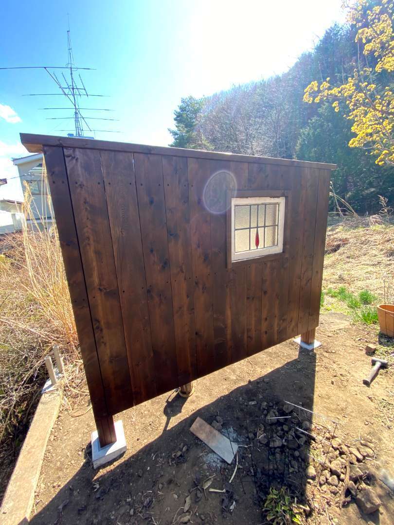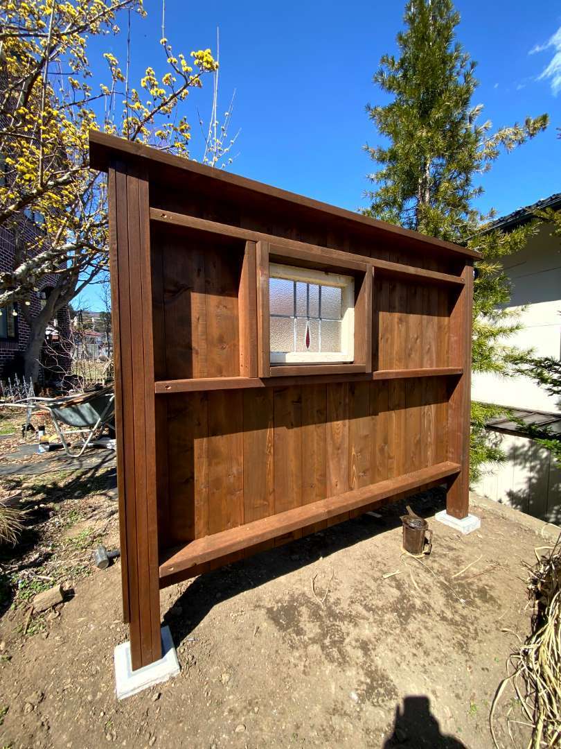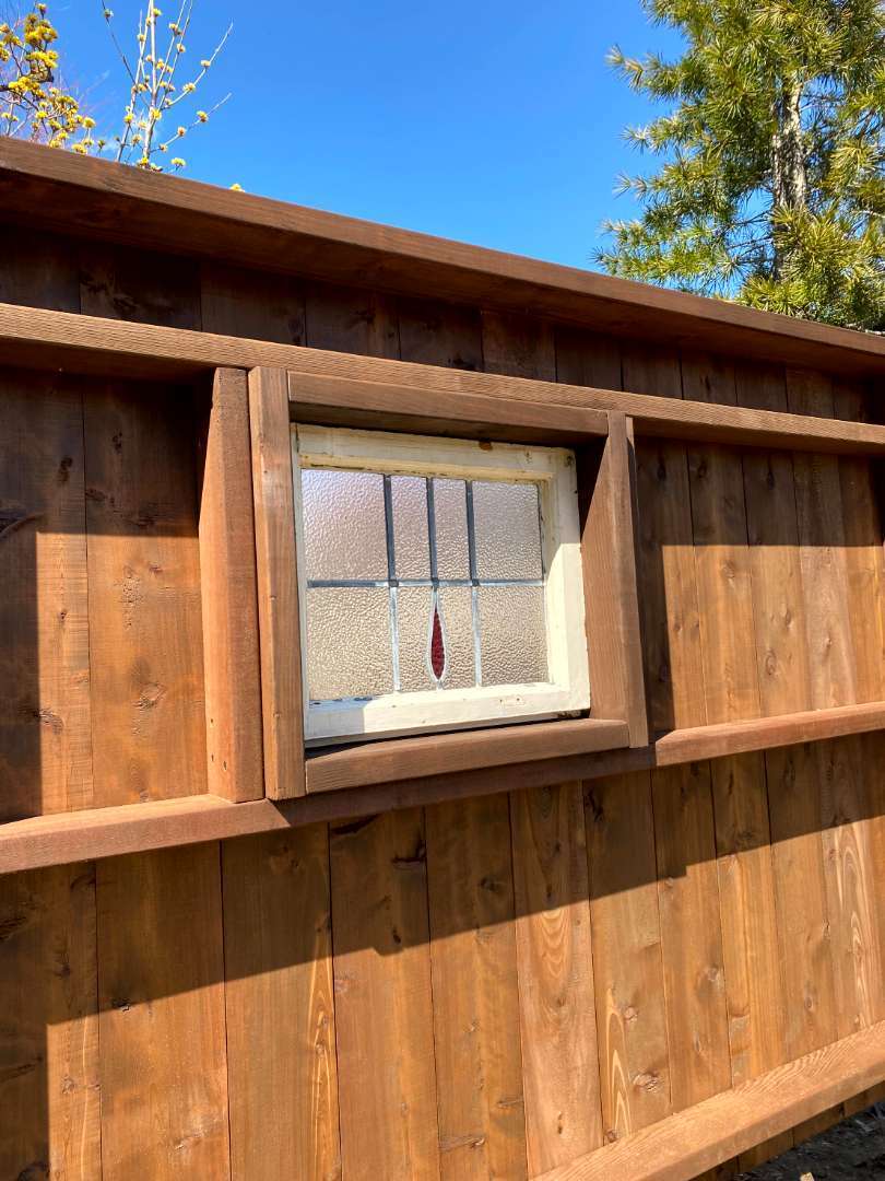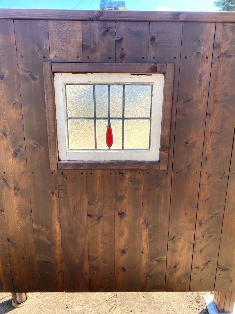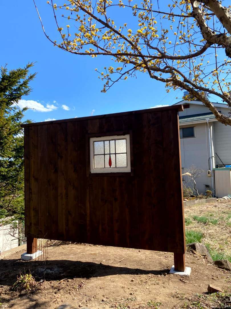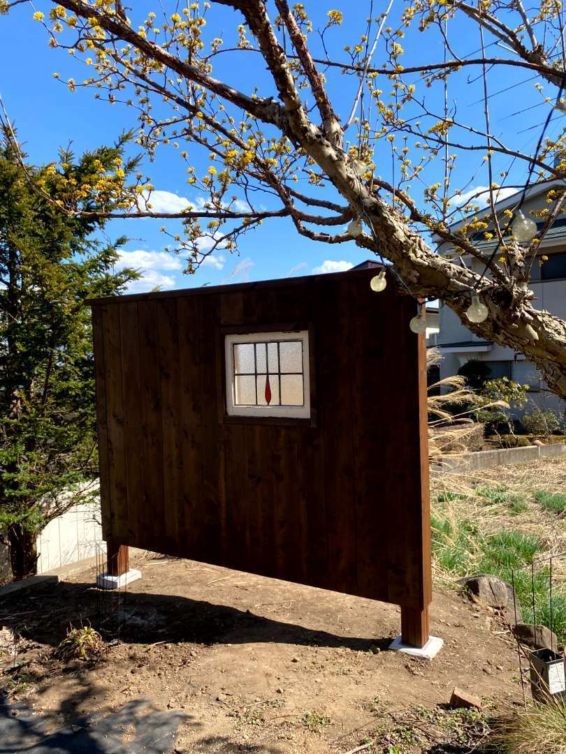 この温かみのある木製フェンスに、お客様の想いが詰まったステンドグラスをはめ込みました。