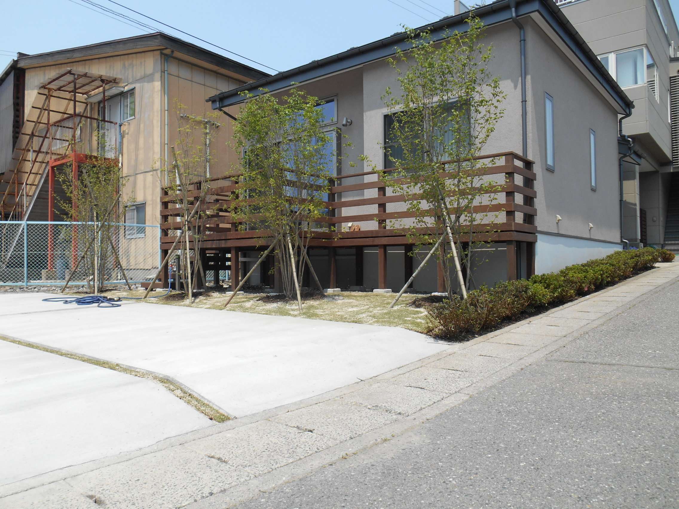 工事内容:駐車場、アプローチ、ウッドデッキ、植栽