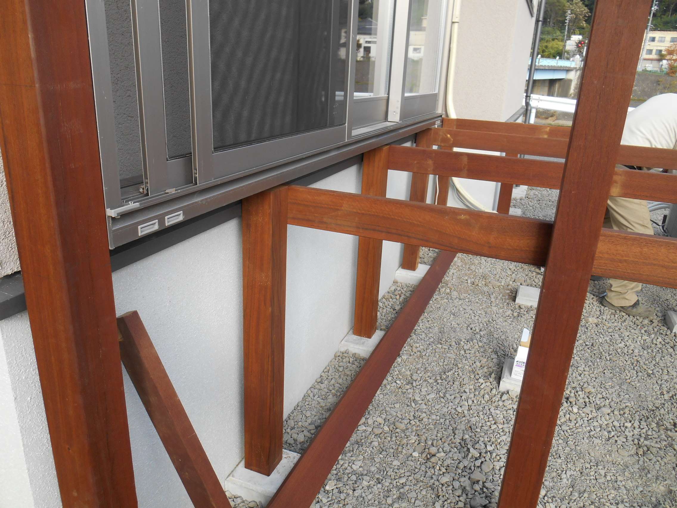ウッドデッキの床の高さは通常地面から50cmほどなので庭とデッキを行ったり来たりする動線が多くなりますが、S様邸の様に床の高い場合はウッドデッキでも十分に楽しめる空間づくりが良い場合もあります。