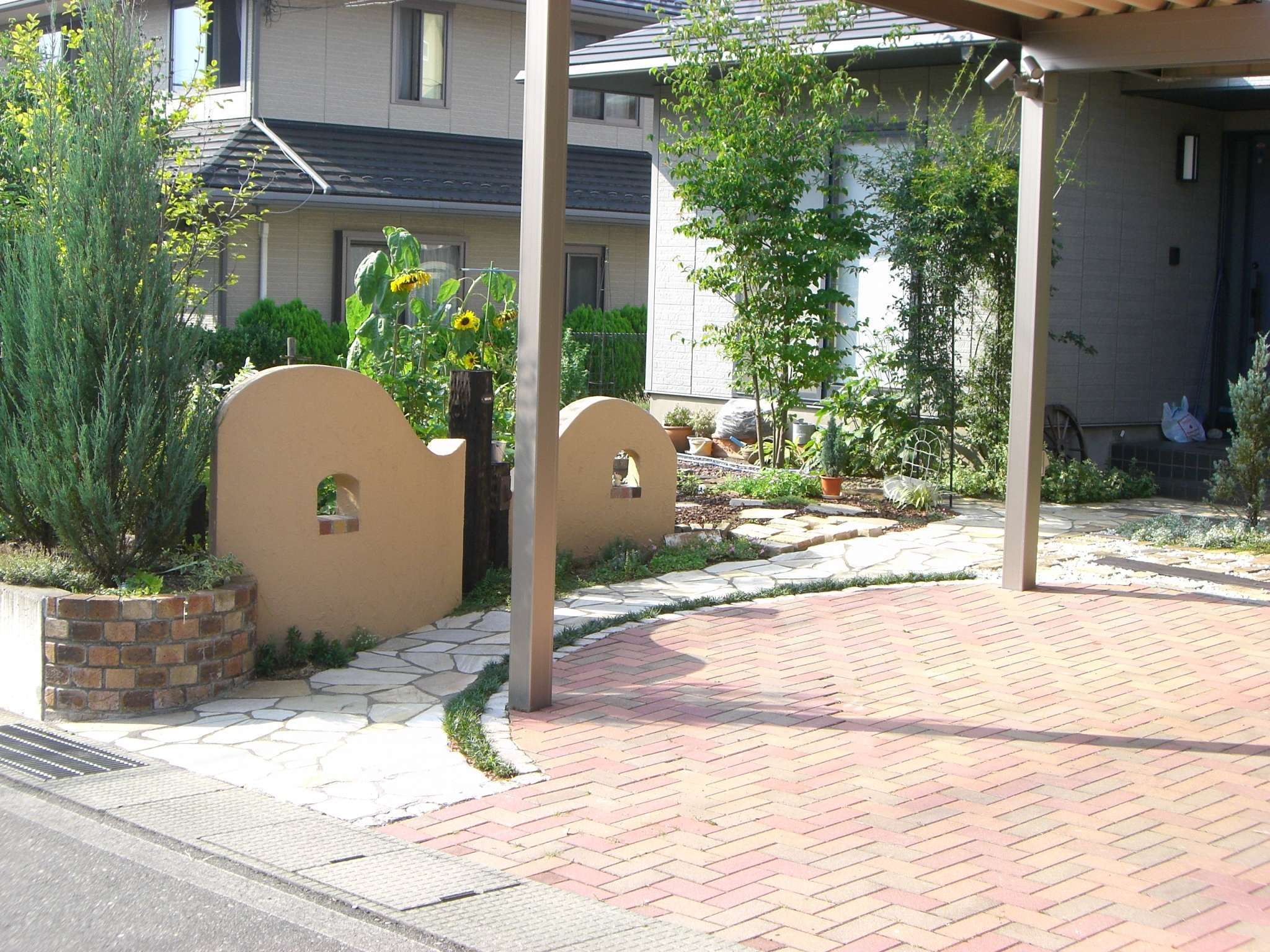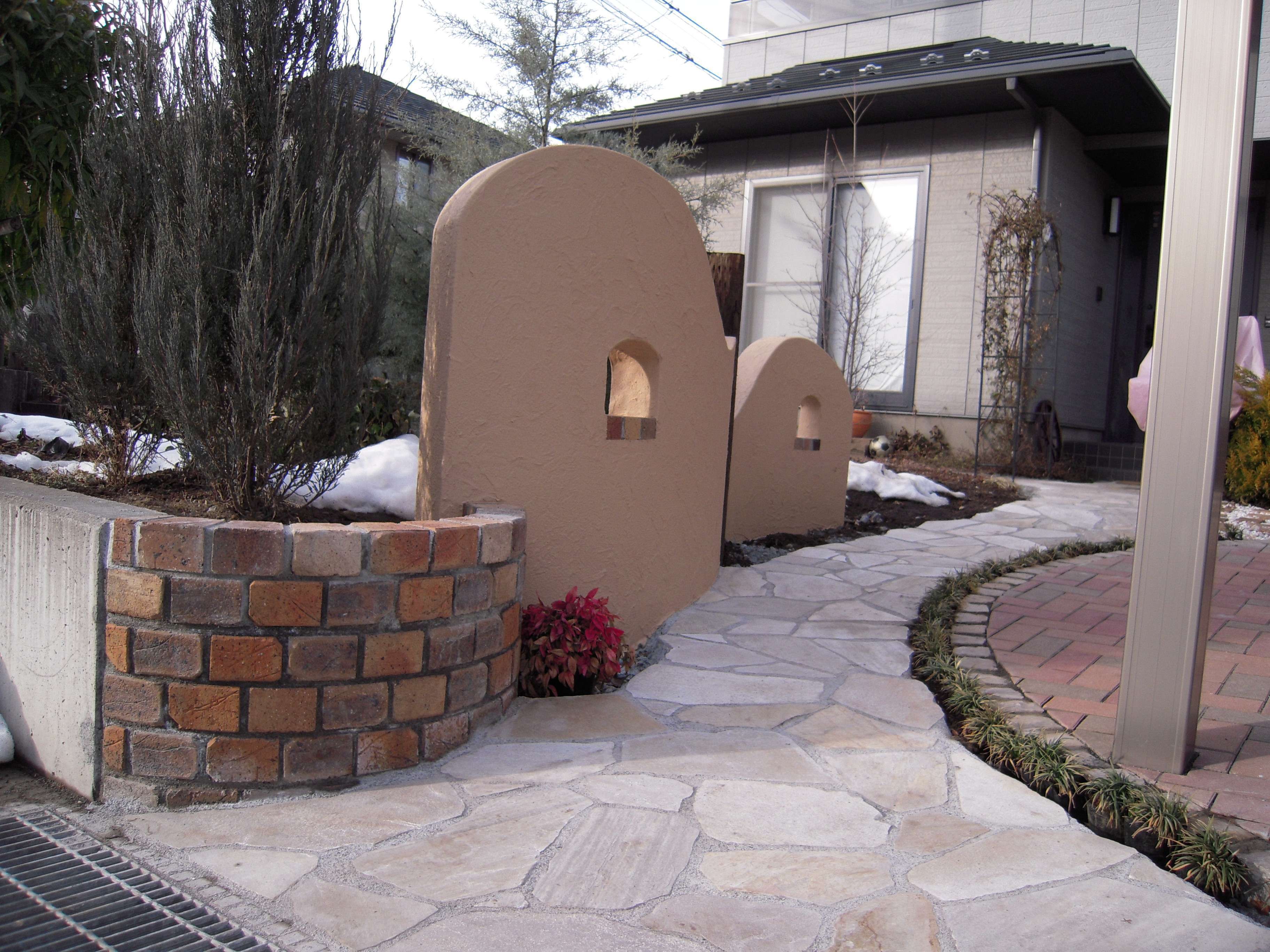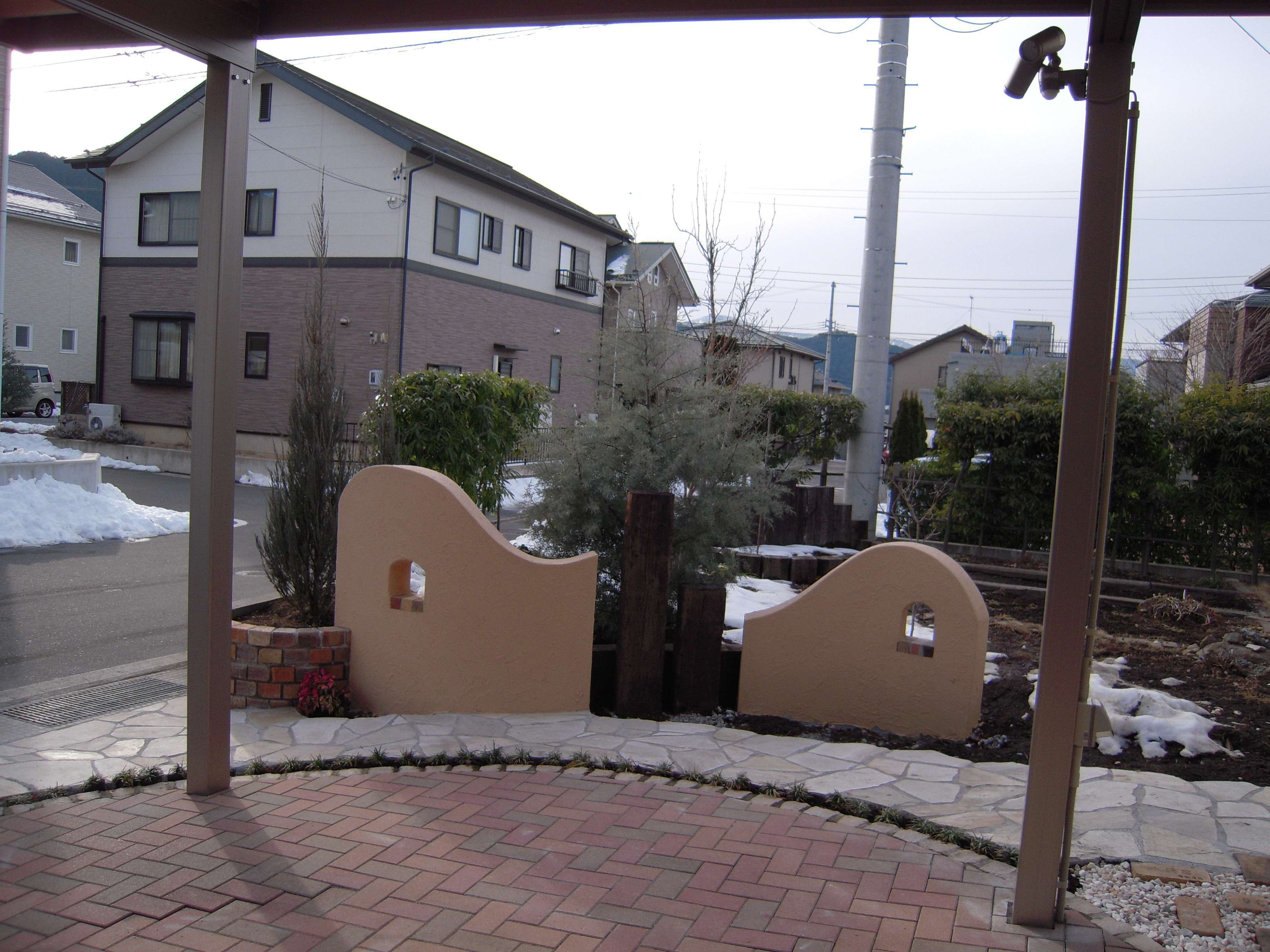 その他 門柱 門壁 施工事例 アプローチ カーポート デザインウォールと石貼りアプローチ 工事場所:塩尻市工事内容:アプローチ、駐車場域アール加工のデザインフォールに石貼りのアプローチです。空いたスペースには草花を植える事が出来ます。駐車場は採光パネルの入ったカーポートが設置されています。雪の日も雪かきが少なくなる機能性がありながらも見た目にも楽しいアプローチ域に仕上がりました。 navigate_next navigate_next 前の施工事例 その他 ガーデンルーム ココマ腰壁タイプ 次の施工事例 その他 石貼りと円形サークルのある庭 1 / 1