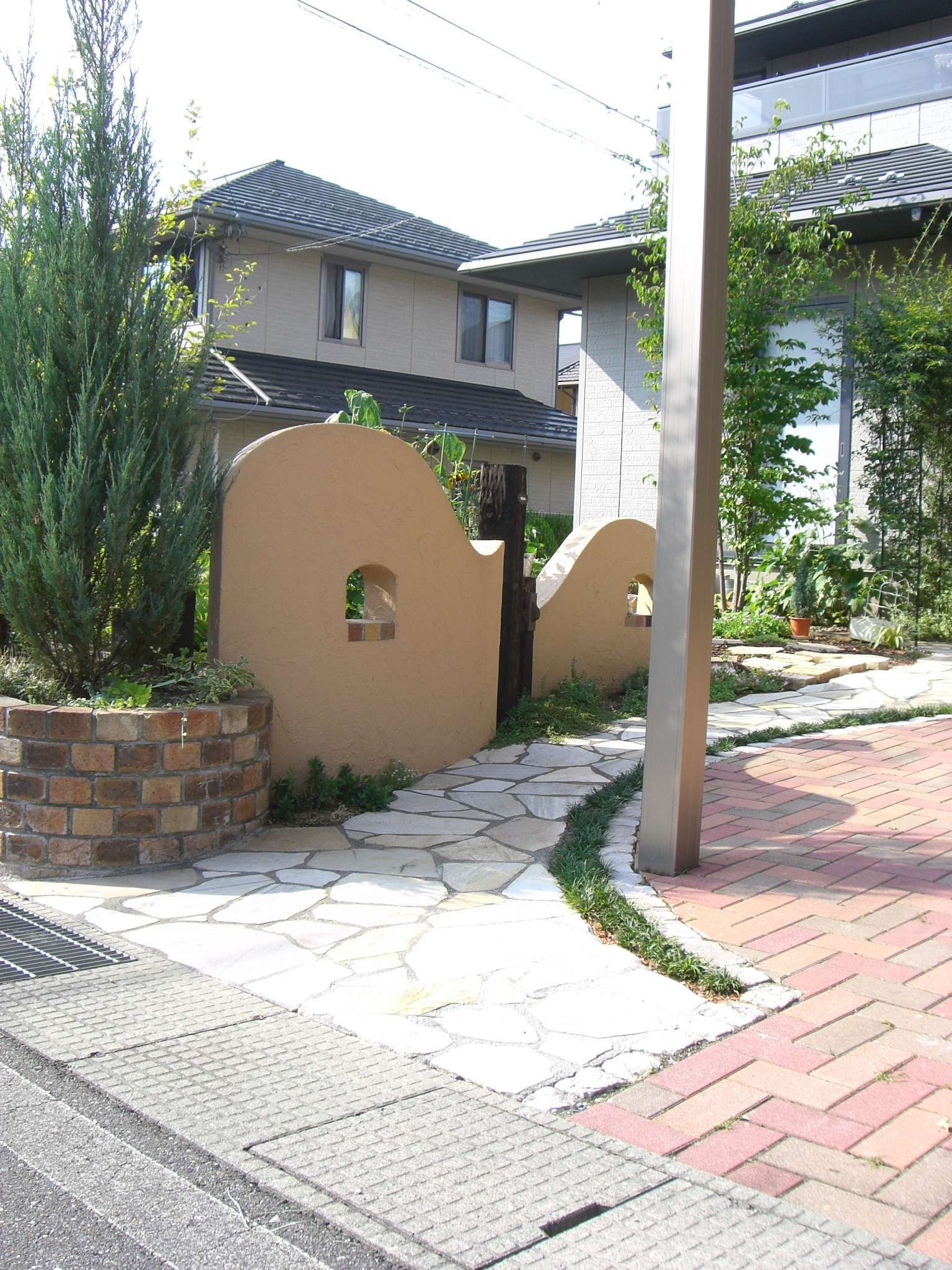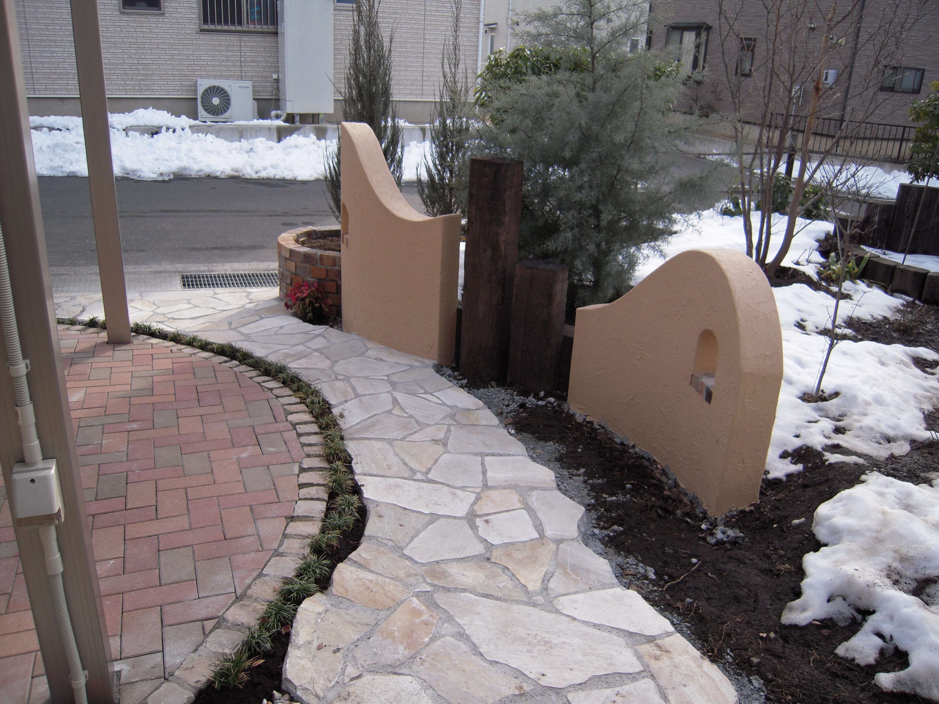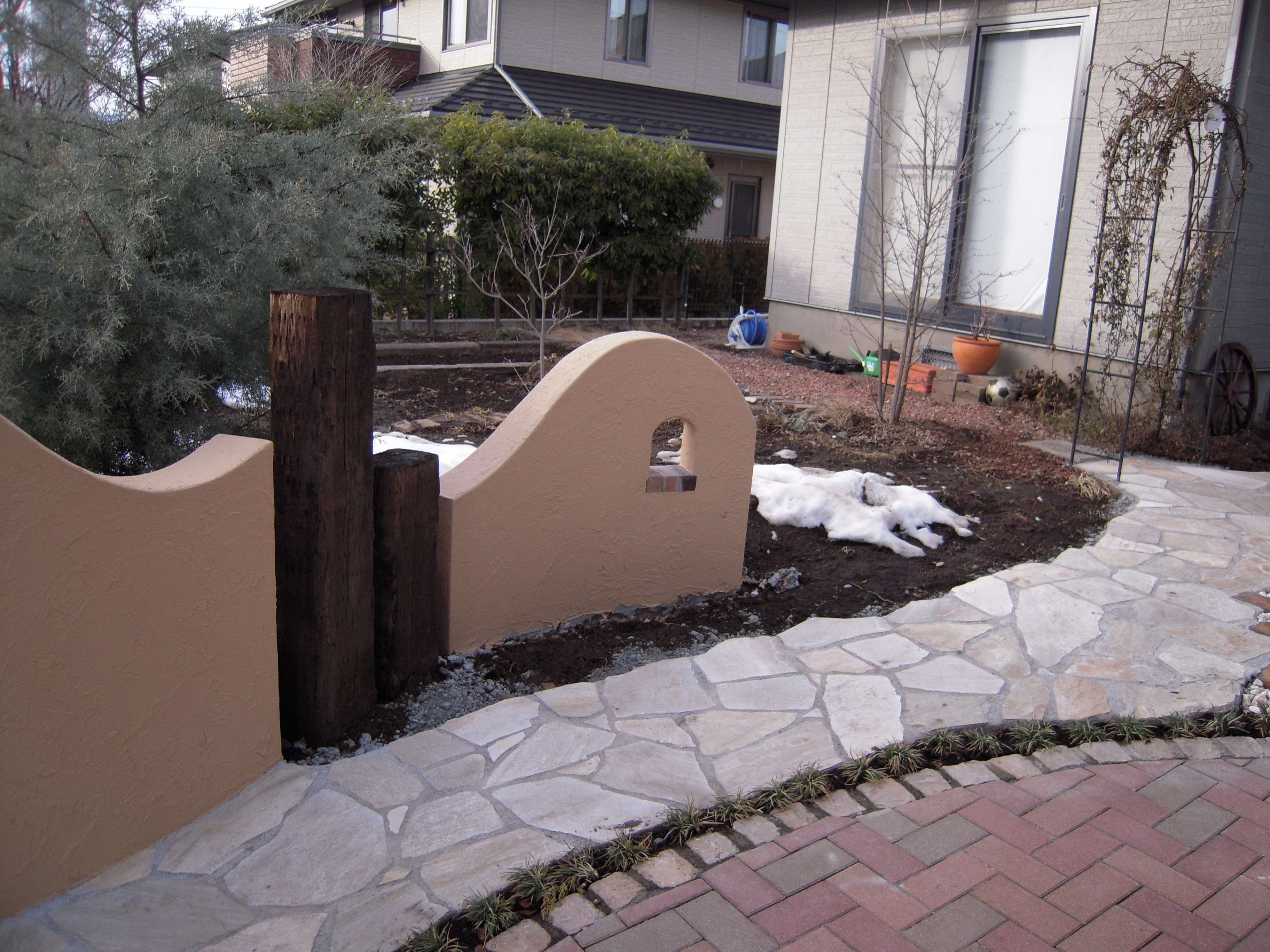 その他 門柱 門壁 施工事例 アプローチ カーポート デザインウォールと石貼りアプローチ 工事場所:塩尻市工事内容:アプローチ、駐車場域アール加工のデザインフォールに石貼りのアプローチです。空いたスペースには草花を植える事が出来ます。駐車場は採光パネルの入ったカーポートが設置されています。雪の日も雪かきが少なくなる機能性がありながらも見た目にも楽しいアプローチ域に仕上がりました。 navigate_next navigate_next 前の施工事例 その他 ガーデンルーム ココマ腰壁タイプ 次の施工事例 その他 石貼りと円形サークルのある庭 1 / 1